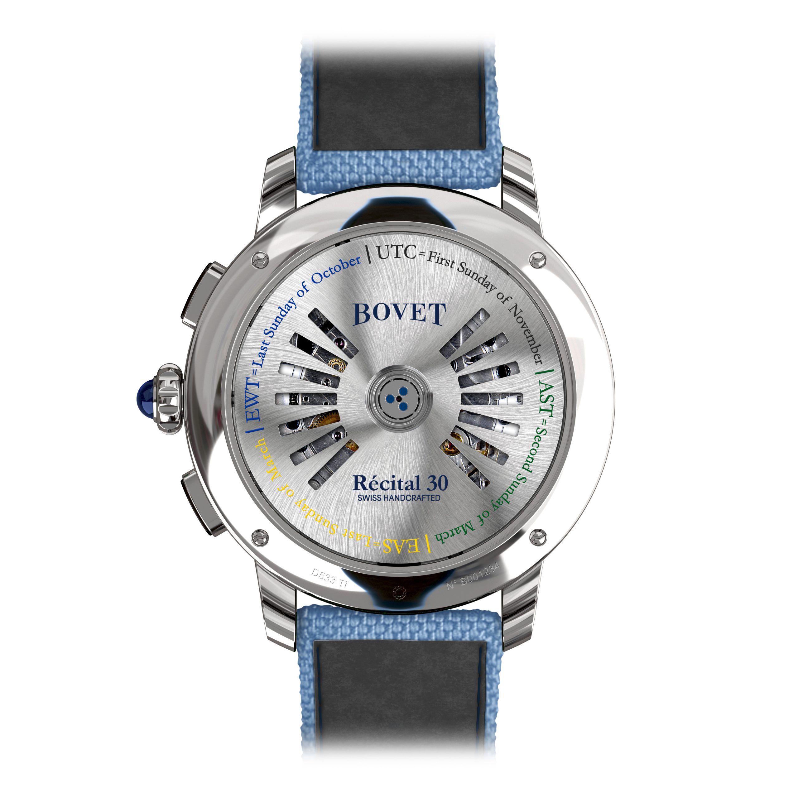 ด้วยการพลิกวงการนาฬิกา world time ของ Récital 30 ทาง Bovet จึงพยายามให้นาฬิกาที่ปฏิวัติวงการนี้สามารถตอบสนองความต้องการของคนรักนาฬิกาให้มากที่สุด จึงเปิดโอกาสให้นักสะสมสามารถปรับเปลี่ยนชื่อเมือง เลือกสรรเฉดสีต่างๆ ของหน้าปัดแสดงค่า 24 ชั่วโมงและสเกลนาทีได้ตามต้องการ อีกทั้งยังสามารถสลับจากเวอร์ชันอินเดียเป็นเวอร์ชันสากล หรือในทางกลับกันก็ได้เช่นกัน เพื่อให้นักเดินทางทุกคนได้เป็นเจ้าของเวลาที่เดินอย่างเที่ยงตรงในทุกซีกโลก