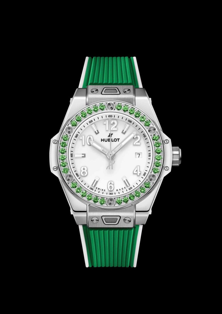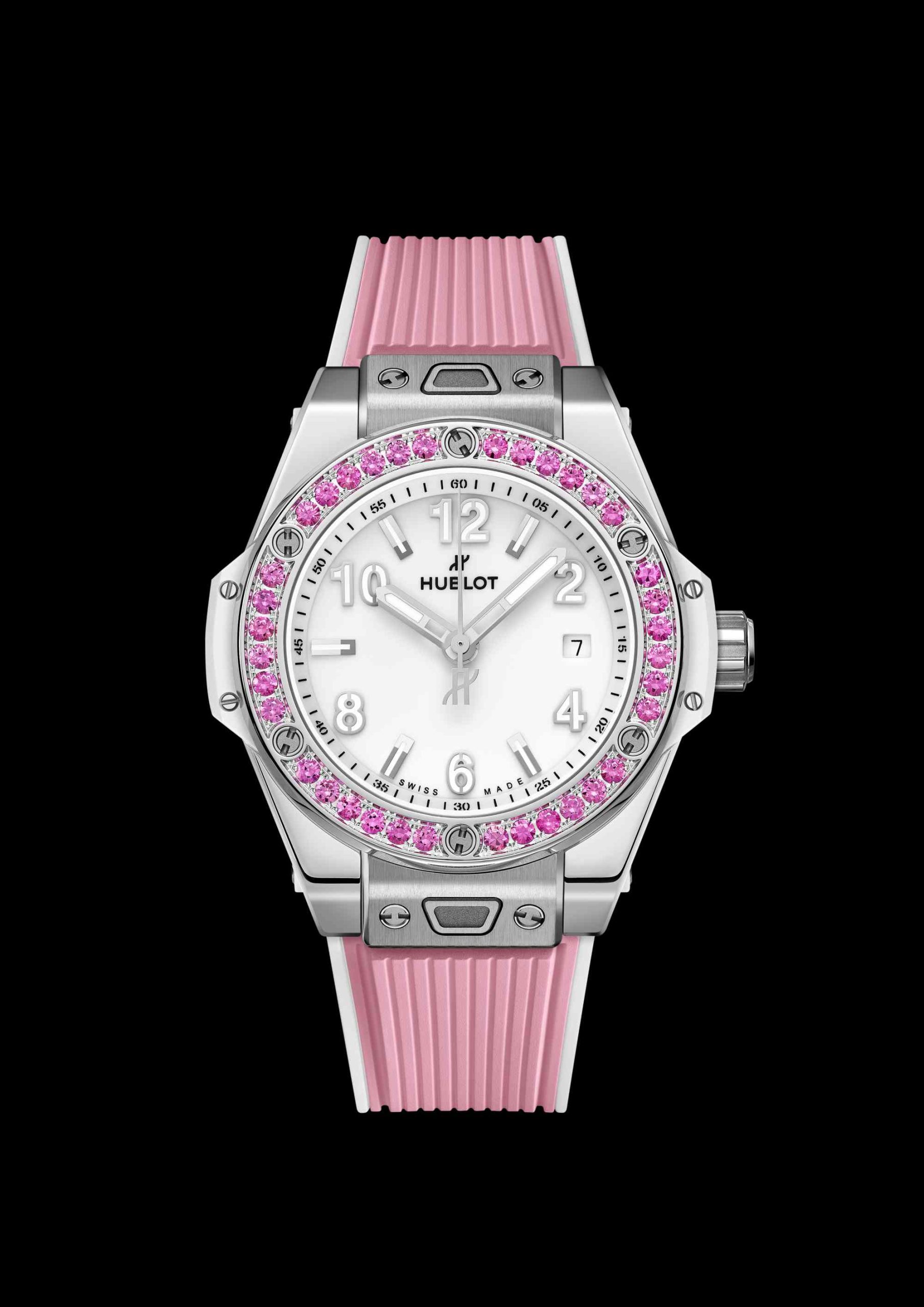 สำหรับ Big Bang One Click Joyful คอลเลกชันนี้เป็นการแสดงออกถึงความเป็นตัวตนที่ชัดเจนและเต็มไปด้วยสีสัน ด้วยการผสานระหว่างดีไซน์อันเป็นเอกลักษณ์ของ Big Bang กับความโดดเด่นของอัญมณีสีสดใส นาฬิกาเรือนนี้จึงเป็นเพื่อนร่วมทางที่สมบูรณ์แบบสำหรับทุกวัน และสะท้อนถึงปรัชญา “Art of Fusion” ที่เป็นหัวใจของ Hublot ได้อย่างแท้จริง นาฬิกาในคอลเลกชันนี้วางจำหน่ายแล้วที่บูติกของ Hublot และตัวแทนจำหน่ายที่ได้รับอนุญาตทั่วโลก