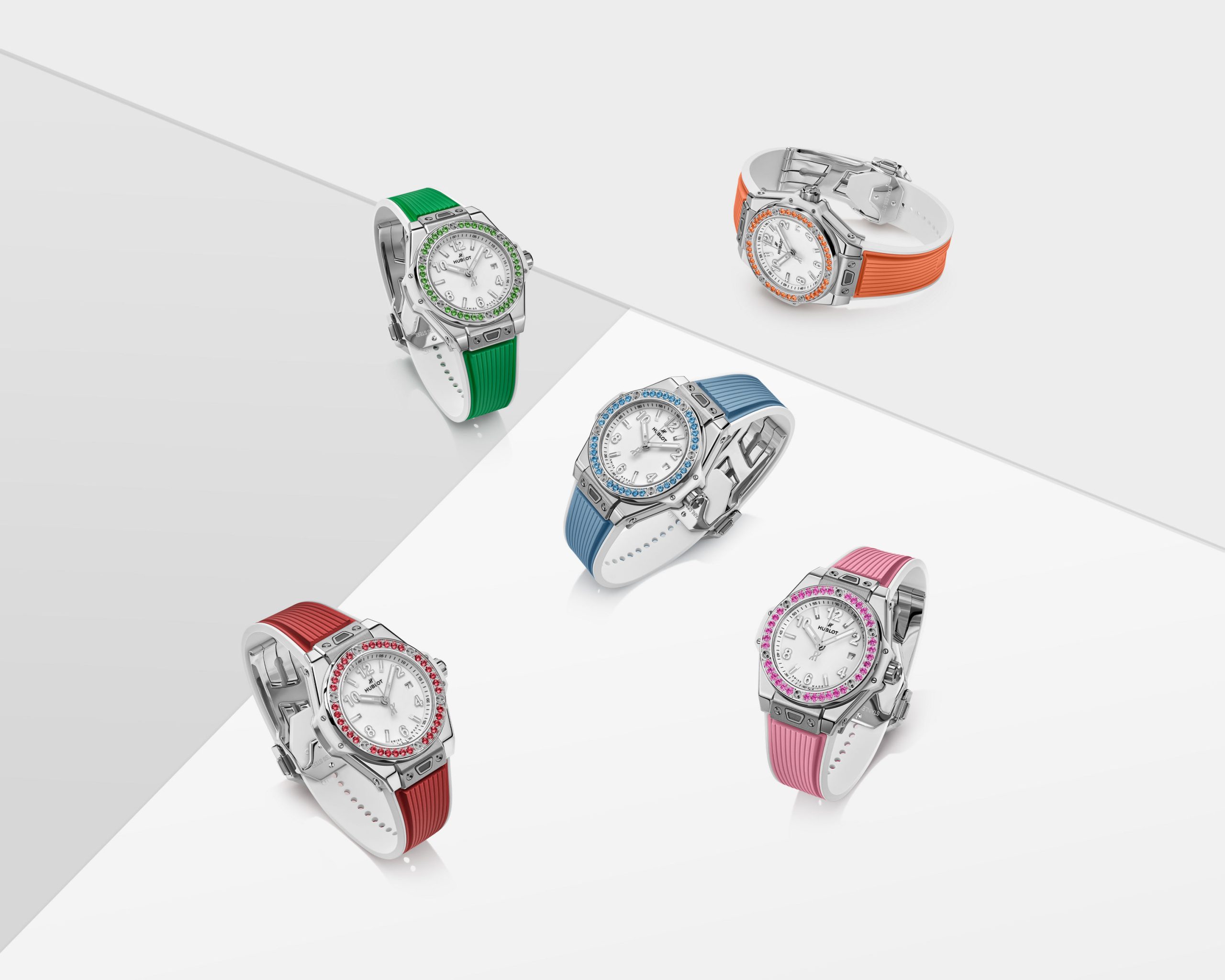 ถ้าพูดถึง Hublot ชื่อแรกที่หลายคนนึกถึงคงหนีไม่พ้น Big Bang ซึ่งเป็นนาฬิกาที่สร้างปรากฏการณ์และฉีกทุกกฎเกณฑ์ของวงการมาตั้งแต่ปี 2005 และวันนี้แบรนด์ก็สร้างความตื่นเต้นอีกครั้งด้วยการเปิดตัวคอลเลกชันใหม่ล่าสุดอย่าง Big Bang One Click Joyful ซึ่งเป็นการนำสีสันอันโดดเด่นและอัญมณีจาก Big Bang รุ่นแรกๆ ที่เคยสร้างชื่อในช่วงต้นยุค 2000 กลับมาอีกครั้ง คอลเลกชันนี้เป็นครั้งแรกที่อัญมณีสีสันสดใสถูกนำมาผสานเข้ากับสายยางได้อย่างลงตัวในไลน์ผลิตภัณฑ์หลัก โดยรังสรรค์ขึ้นเป็น 5 รุ่น 5 สีสัน 5 อัญมณี และ 5 อารมณ์ที่แตกต่างกัน