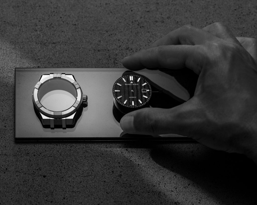 ปกติแล้วหน้าปัดคาร์บอนมักใช้ในนาฬิการะดับสูง (Haute Horlogerie) แต่ Maurice Lacroix ทำให้สิ่งนี้เข้าถึงได้ง่ายขึ้น โดยแบรนด์ได้ร่วมมือกับบริษัทผู้เชี่ยวชาญที่อยู่ห่างจาก Saignelégier ประมาณ 40 กม. เพื่อสร้างหน้าปัดคาร์บอนให้กับ AIKONIC ซึ่งสอดคล้องกับความตั้งใจของแบรนด์ที่ต้องการสร้างนาฬิกาที่มีกลิ่นอายท้องถิ่นที่โดดเด่น
