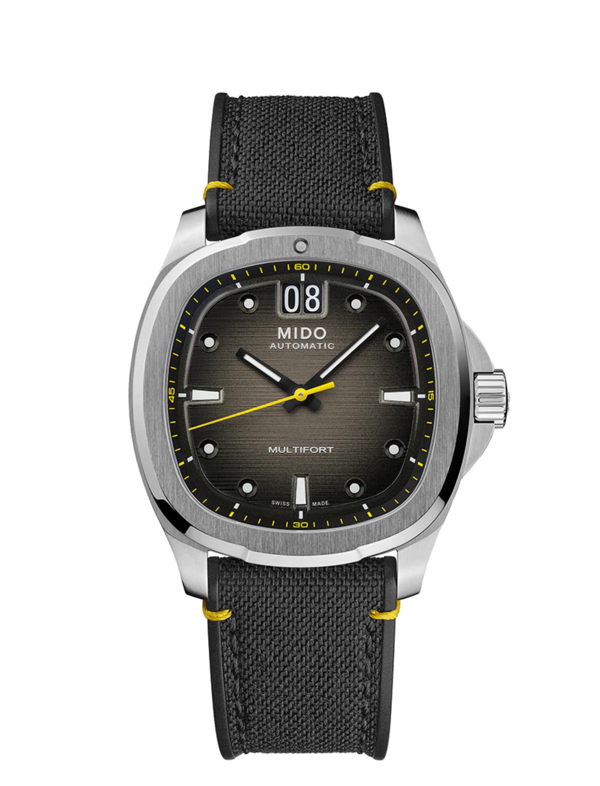ถึงเวลาแล้วที่คุณจะได้สัมผัสประสบการณ์แห่งเวลาอันสดใหม่กับ Multifort TV Big Date ดีไซน์เฉดสีดำตัดเหลือง จากแบรนด์นาฬิกาคุณภาพมาตรฐานตามแบบฉบับ Swiss Made พร้อมให้คุณเป็นเจ้าของได้แล้ววันนี้ที่เคาน์เตอร์ MIDO ณ ห้างสรรพสินค้าชั้นนำ ไม่ว่าจะเป็นเซ็นทรัล โรบินสัน เดอะมอลล์ และตัวแทนจำหน่ายทั่วประเทศ หรือหากสะดวกสบายยิ่งขึ้น สามารถสั่งซื้อผ่านช่องทางออนไลน์ที่ MIDO Official Store ใน Shopee และ Lazada