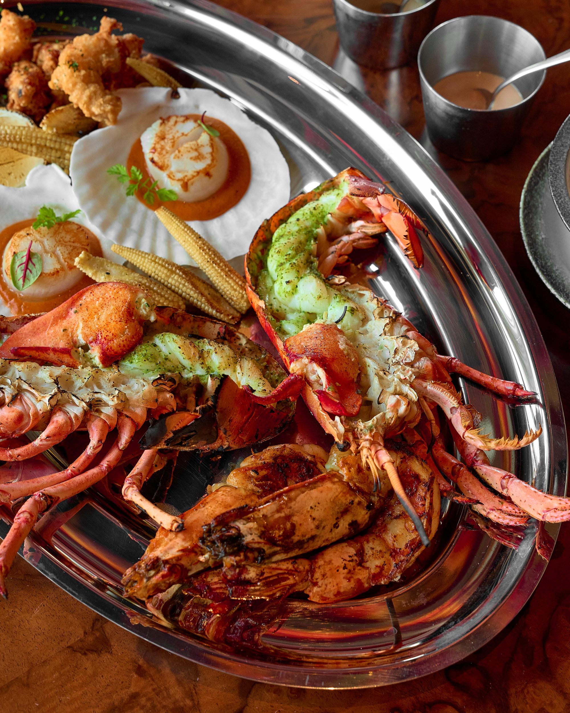แต่ไฮไลท์ที่แท้จริงอยู่ที่จานหลัก ซึ่งเป็นอาหารจานแชร์ (Sharing Platter) ที่เรียกว่า “Best of the Sea” ที่รวมสุดยอดอาหารทะเลไว้บนถาดเดียว ไม่ว่าจะเป็น หอยเชลล์ฮอกไกโด (Hokkaido Scallops) กุ้งย่าง (Grilled Prawns) และ ปลาแซลมอนจากประเทศนอร์เวย์ (Norwegian Sustainable Salmon)