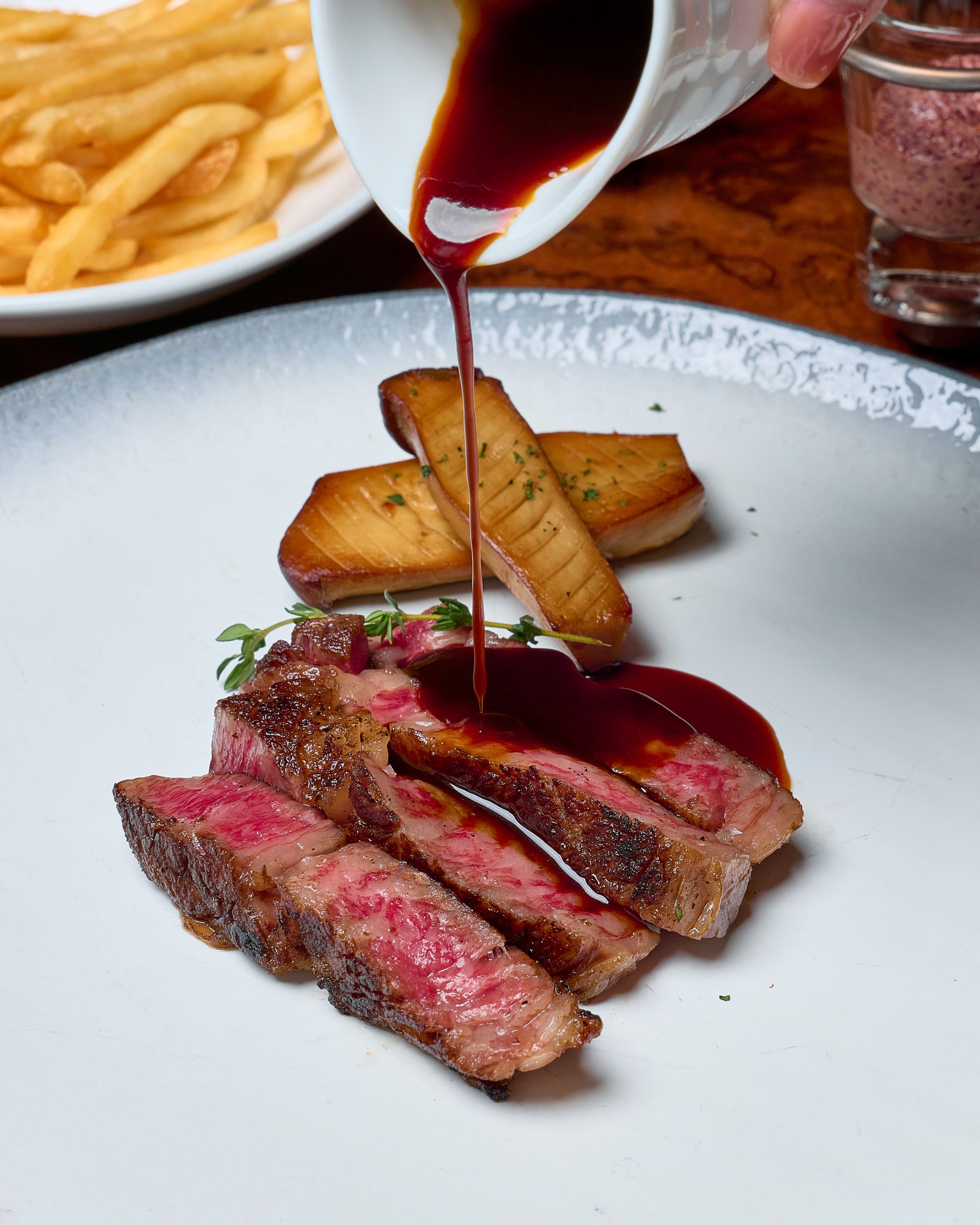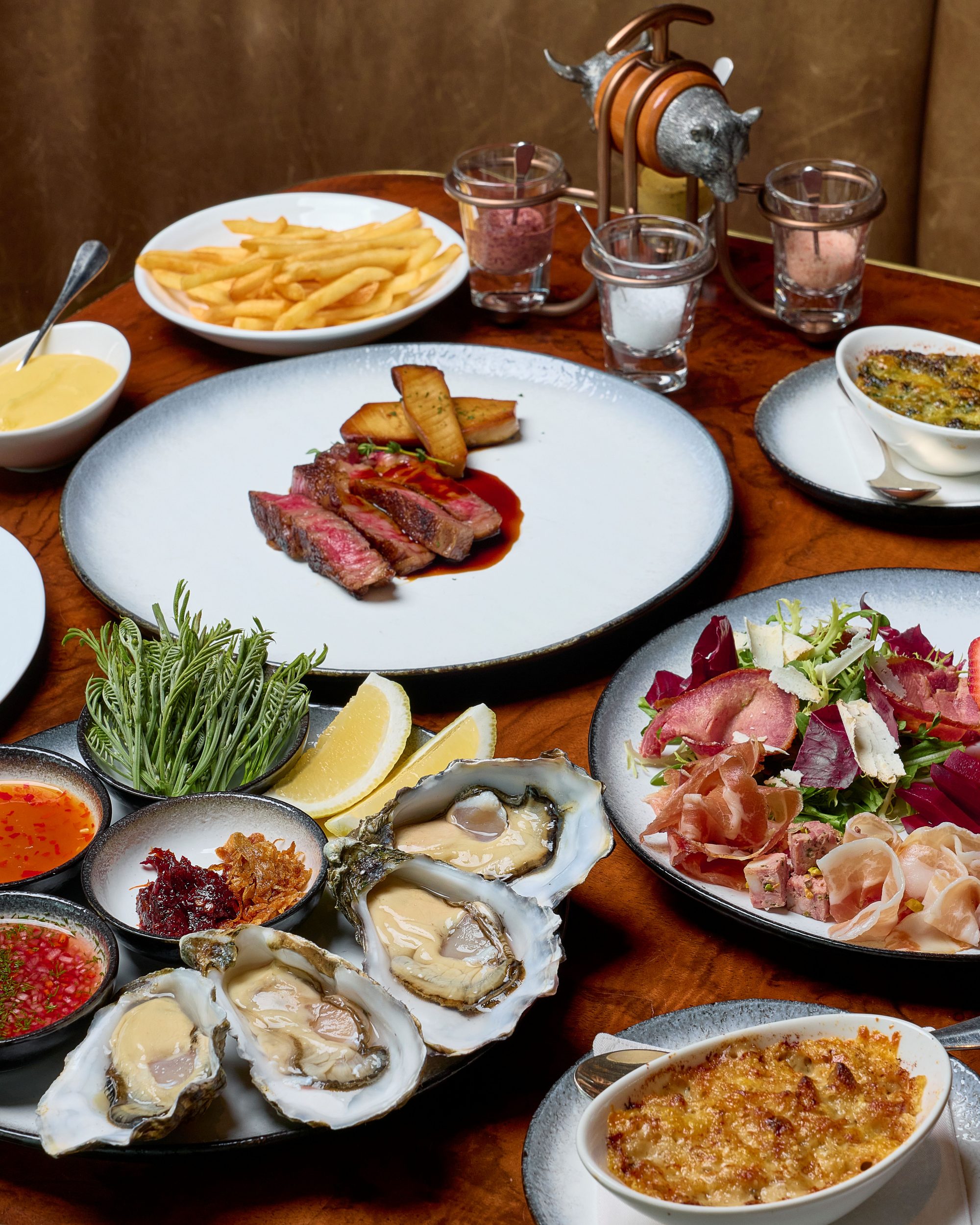 มื้อพิเศษนี้เริ่มต้นด้วยความหรูหราจากเมนูเรียกน้ำย่อย (Appetizers) ที่คัดสรรมาอย่างดี อาทิ หอยนางรมจีราโด (Gillardeau Oysters) ฮามอง อิเบอริโก (Jamón Ibérico) และ ทาร์ทาร์เนื้อวากิว (Wagyu Beef Tartare) จากนั้นค่อยเลือกซุปร้อนๆ อย่าง ซุปล็อบสเตอร์บิสก์ (Lobster Bisque) หรือ ซุปใสสูตรพิเศษสไตล์บูลแอนด์แบร์ (Bull & Bear Consommé)