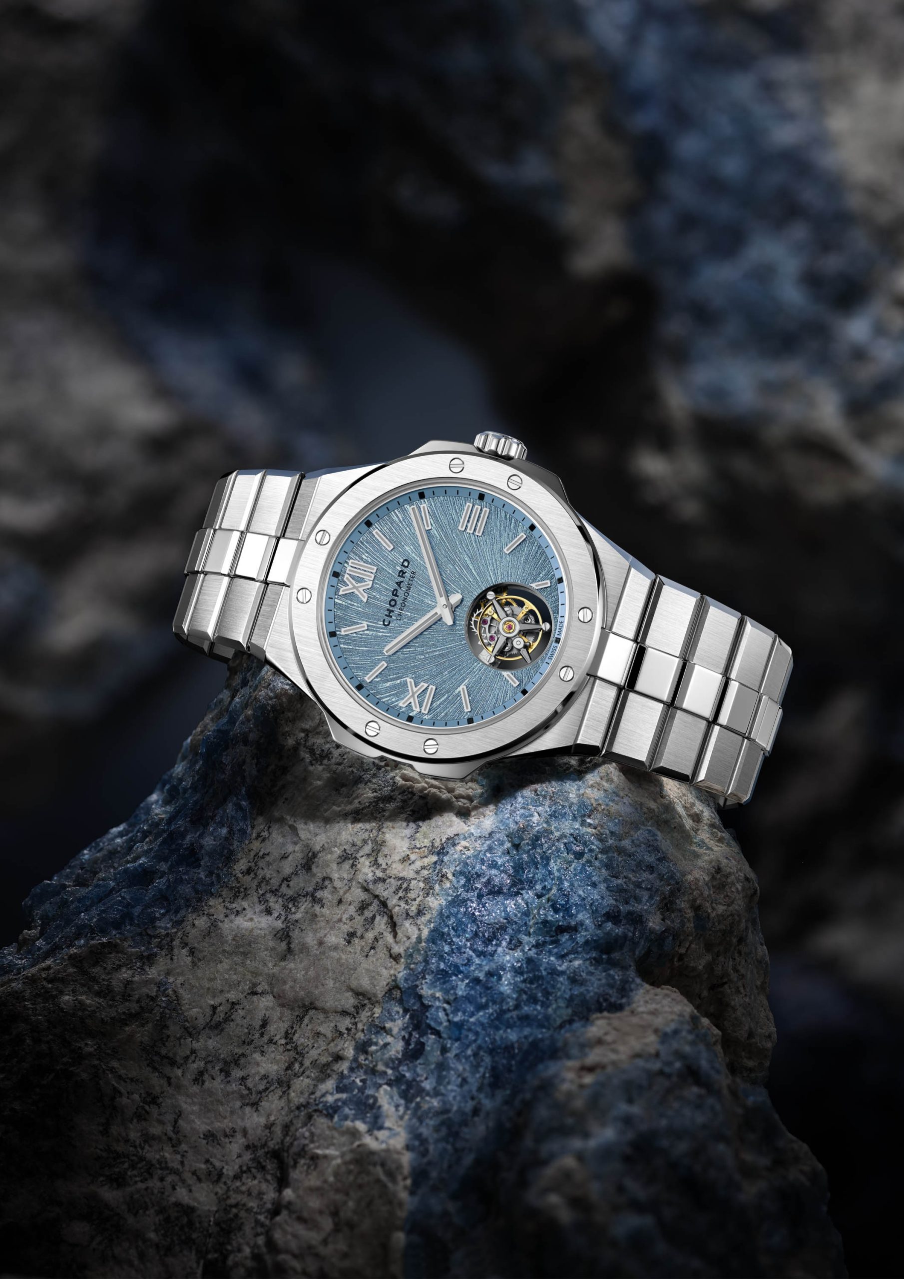 ย้อนกลับไปเมื่อปี 2022 Chopard ได้เปิดตัว Alpine Eagle Flying Tourbillon ซึ่งทางแบรนด์เป็นเจ้าเดียวที่สามารถผลิตกลไกฟลายอิ้ง ทูร์บิญองที่ได้รับการรับรองความแม่นยำโครโนมิเตอร์และตรา Poinçon de Genève ล่าสุด ทางแบรนด์ได้เผยเวอร์ชันที่ 3 ของนาฬิกานี้ซึ่งผลิตจาก Lucent Steel™ สตีลสุดเอ็กซ์คลูซีฟของแบรนด์ซึ่งขึ้นชื่อเรื่องความทนทานและผลิตจากวัสดุรีไซเคิลมากถึง 80 เปอร์เซ็นต์ พร้อมหน้าปัดเฉดสีใหม่ ‘Rhône Blue’ ซึ่งได้แรงบันดาลจากฉากทัศน์ธรรมชาติของ เทือกเขาแอลป์ ต้นกำเนิดของแม่น้ำ ‘Rhône’