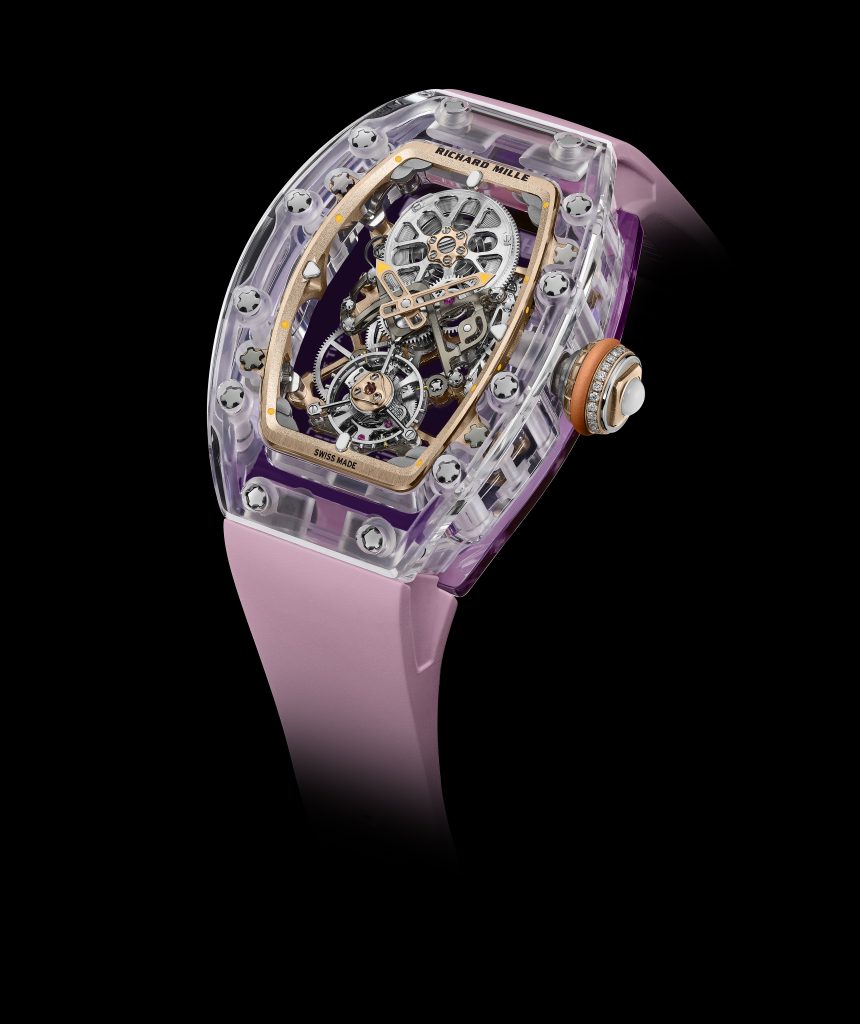 Richard Mille ได้สั่งสมความเชี่ยวชาญในการสร้างสรรค์นาฬิกาจากแซฟไฟร์สังเคราะห์มาเป็นเวลานาน โดยถือเป็นเจ้าแรกที่ได้นำวัสดุสุดท้าทายนี้มาใช้ในการผลิต ตัวเรือนนาฬิกา ทั้งขอบตัวเรือน ขอบข้าง และฝาหลังตัวเรือน ดังเช่นผลงานล่าสุด RM 75-01 Flying Tourbillon Sapphire ซึ่งได้รับแรงบันดาลใจจากโลกแห่งท้องทะเล นำเสนอออกมา 3 รุ่น