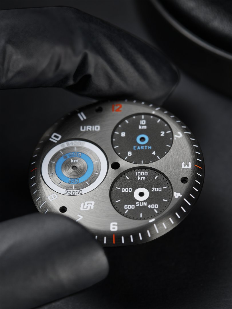 เข็มนาฬิกาทรงไซริงค์ซึ่งถือเป็นนวัตกรรมใหม่สำหรับ URWERK รวมถึงหน้าปัดผลิตขึ้นในเวิร์กช็อปของแบรนด์เอง ดังนั้น จึงวางใจได้ในความเนี้ยบและดีไซน์ที่คงความออริจินัลของแบรนด์ไว้ได้อย่างครบถ้วน