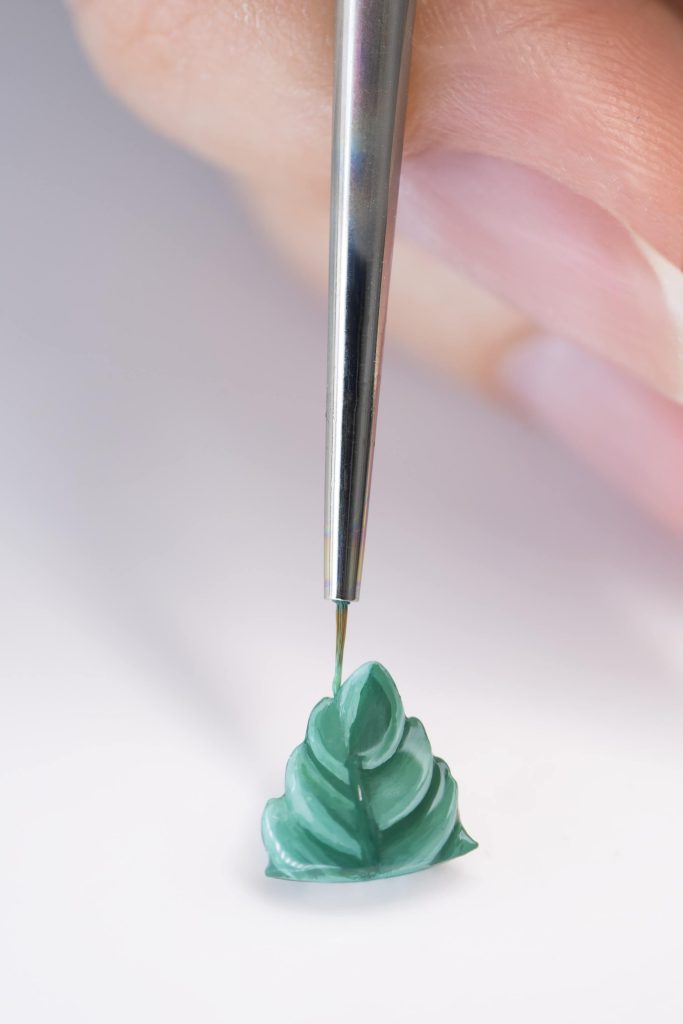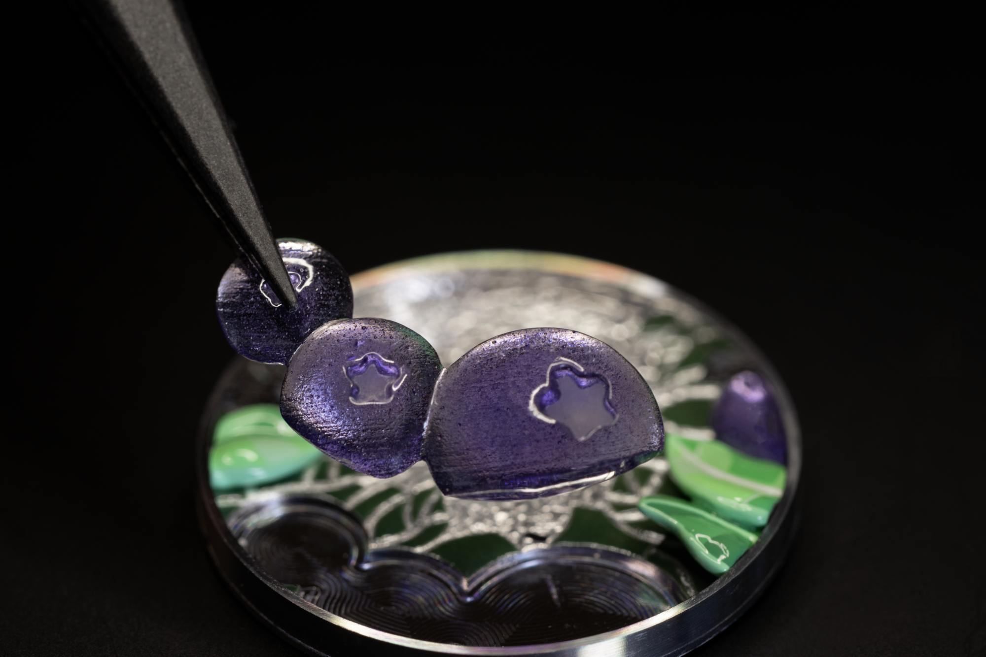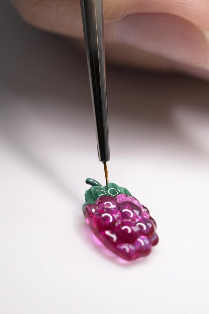 เพื่อให้ทุกจังหวะการเคลื่อนผ่านของเข็มบอกเวลาเต็มไปด้วยความหรูหราตราตรึงใจ หัตถศิลป์ชั้นสูงแบบฉบับฝรั่งเศสคือกลไกสำคัญในการขับเคลื่อนกระบวนการสร้างสรรค์อันเต็มไปด้วยความสลับซับซ้อนภายในห้องปฏิบัติการงานฝีมือผลิตนาฬิกาของเมซง ณ กรุงเจนีวา ซึ่งไม่ได้เพียงสร้างสรรค์ผลงานเลอค่าเท่านั้น หากยังดำเนินภารกิจอนุรักษ์และสืบสานความเป็นเลิศในการใช้ไหวพริบพลิกแพลงทักษะความชำนาญแขนงต่างๆ ให้คงอยู่ต่อไปเป็นนิรันดร์ สำหรับคอลเลกชันย่อย Perlée Extraordinaire Fruits Enchantés นี้ เทคนิคการลงยาถูกนำมาใช้ร่วมกับประติมากรรมงานทอง และงานฝีมือค้อนดุนลายทอง เพื่อให้การอยู่ร่วมกันระหว่างวัสดุและรูปแบบการทำงานที่ต้องอาศัยความละเอียดอ่อน นำมาซึ่งความสลับซับซ้อนสุดตระการตาของศิลปกรรมย่อส่วนสามมิติบนหน้าปัด