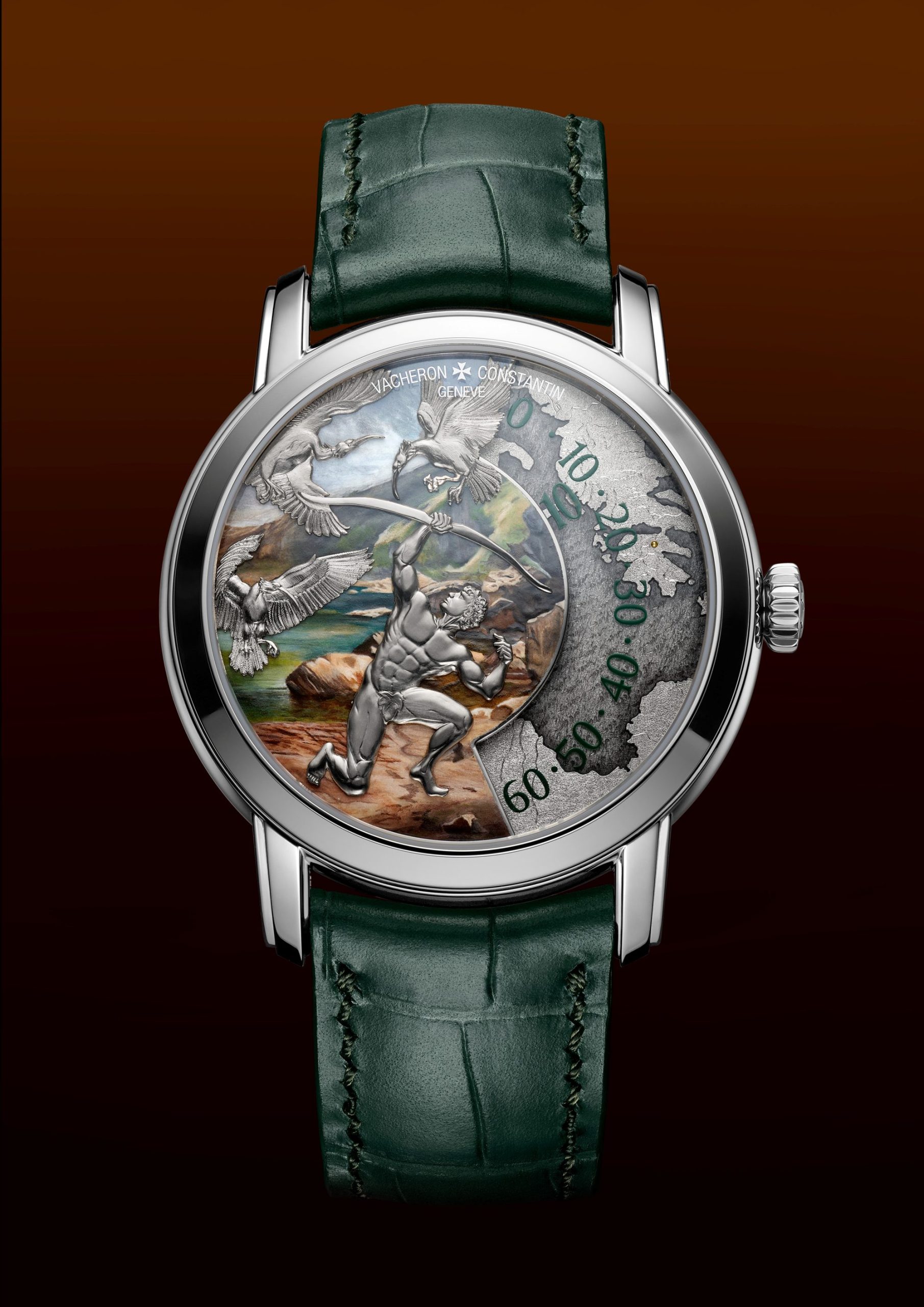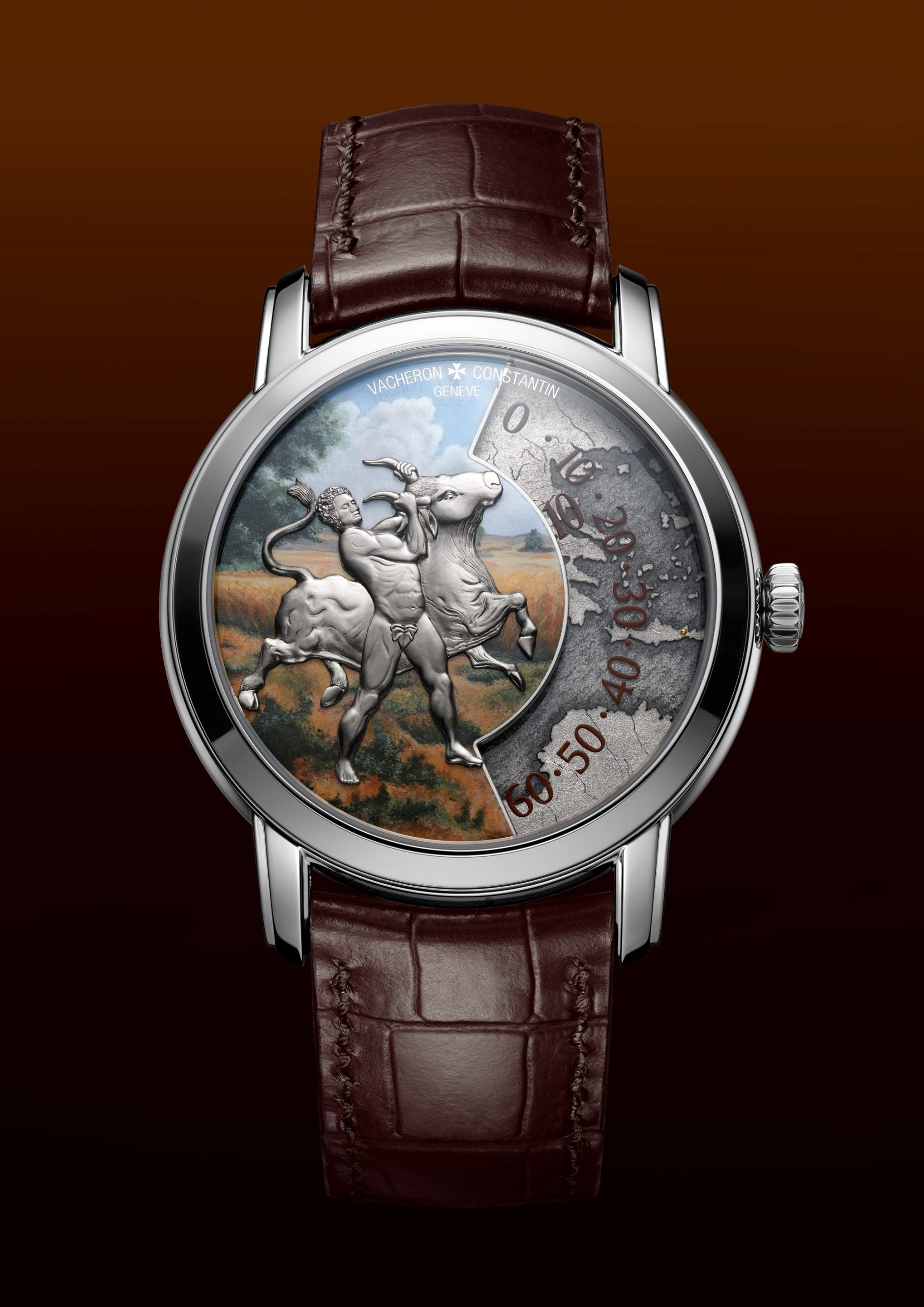 - หัตถศิลป์และหน้าปัด: หน้าปัดไวท์โกลด์สองชั้นถูกเปลี่ยนให้เป็นผืนผ้าใบแห่งชีวิต ซึ่งถ่ายทอดเรื่องราวผ่านงานหัตถศิลป์สองแขนงคือ การลงยาแบบกรองด์ เฟอ (Grand Feu Enamel) และ การวาดภาพขนาดจิ๋ว (Miniature Painting) ควบคู่ไปกับ การแกะสลักด้วยมือ (Hand-engraving) โดยนาฬิกาได้นำเสนอสี่ภารกิจในตำนาน ได้แก่ ราชสีห์แห่งเนเมีย (Nemean Lion) งูไฮดราแห่งเลอร์นา (Lernaean Hydra) นกสติมฟาเลียน (Stymphalian Birds) และวัวแห่งครีต (Cretan Bull)